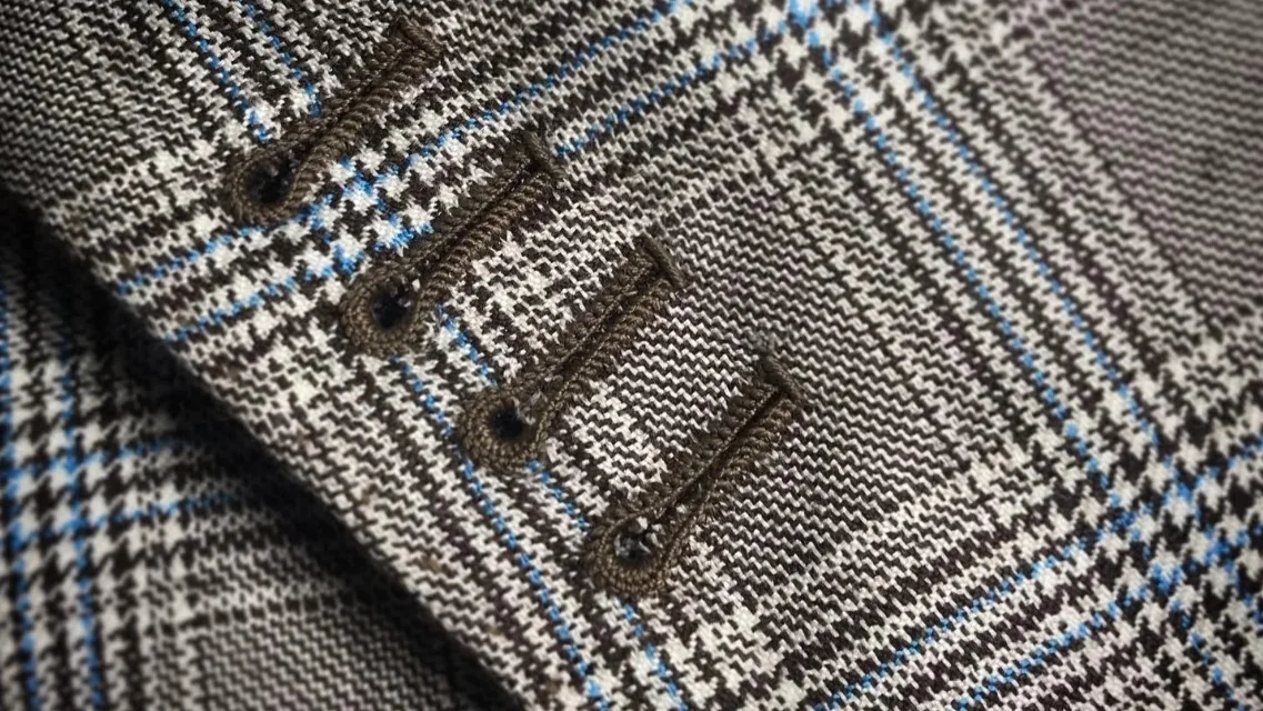 Sur un costume sur-mesure, les boutonnières de manche sont cousues à la main et fonctionnelles — elles s’ouvrent réellement. C’est un détail discret, mais c’est aussi l’un des marqueurs les plus fiables d’un vrai travail artisanal.